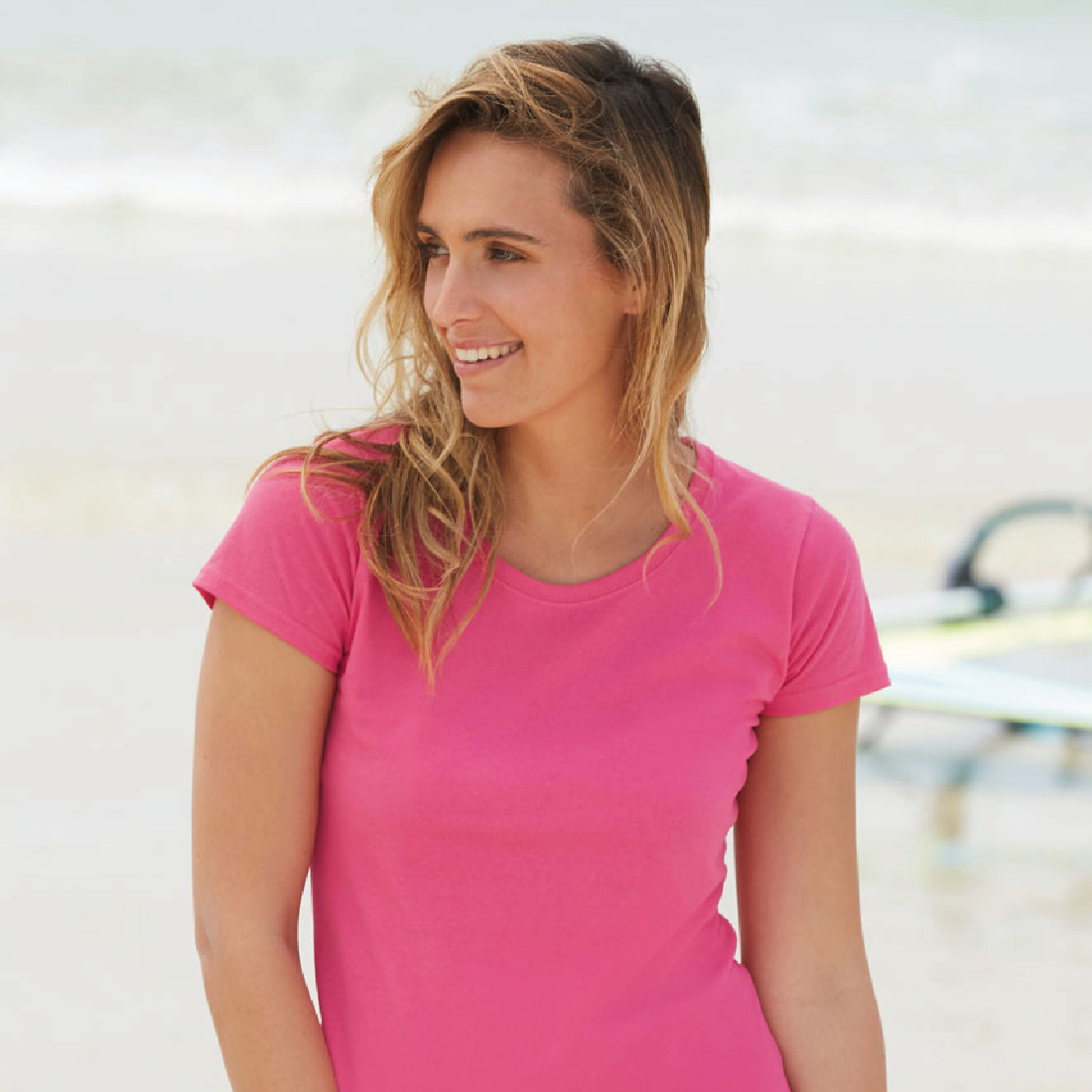 Вталени рекламни тениски с кройка елегантно подчертаваща вашата фигура. Лека, удобна с деколте и двойна оплетка и трико отговарящо на стандарта Belcoro® за по – чист, по – гладък и стабилен печат.